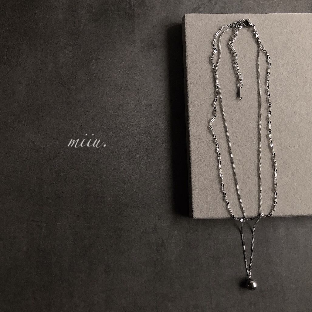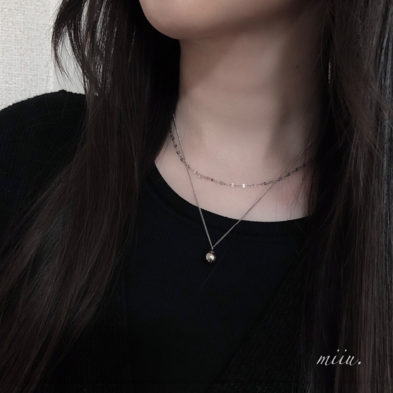 トップのメタルボールの存在感が、上品な中にもクールさを感じるネックレスになっています。